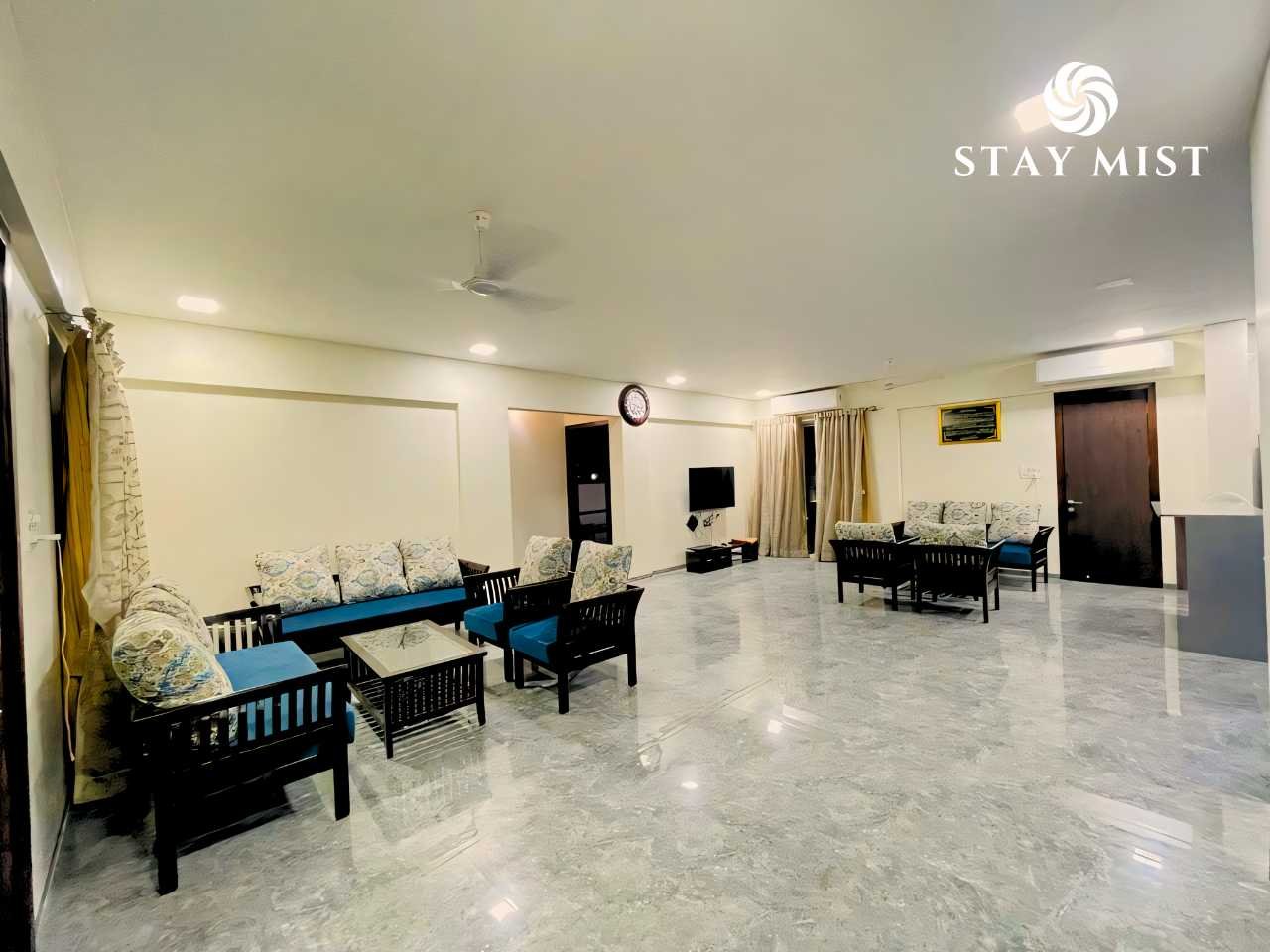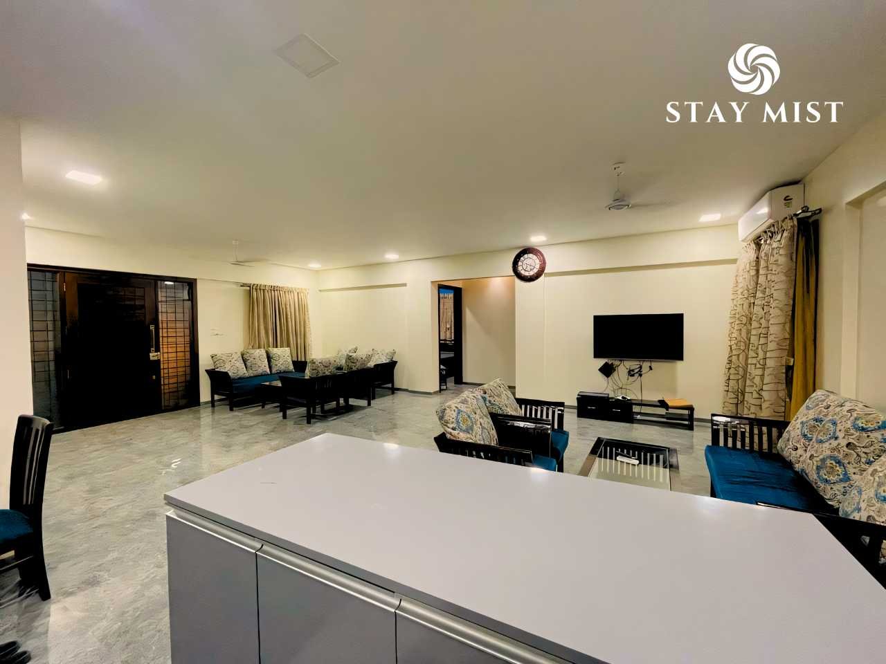 Spacious and air-conditioned with ample seating. Dining table for group meals and conversations.